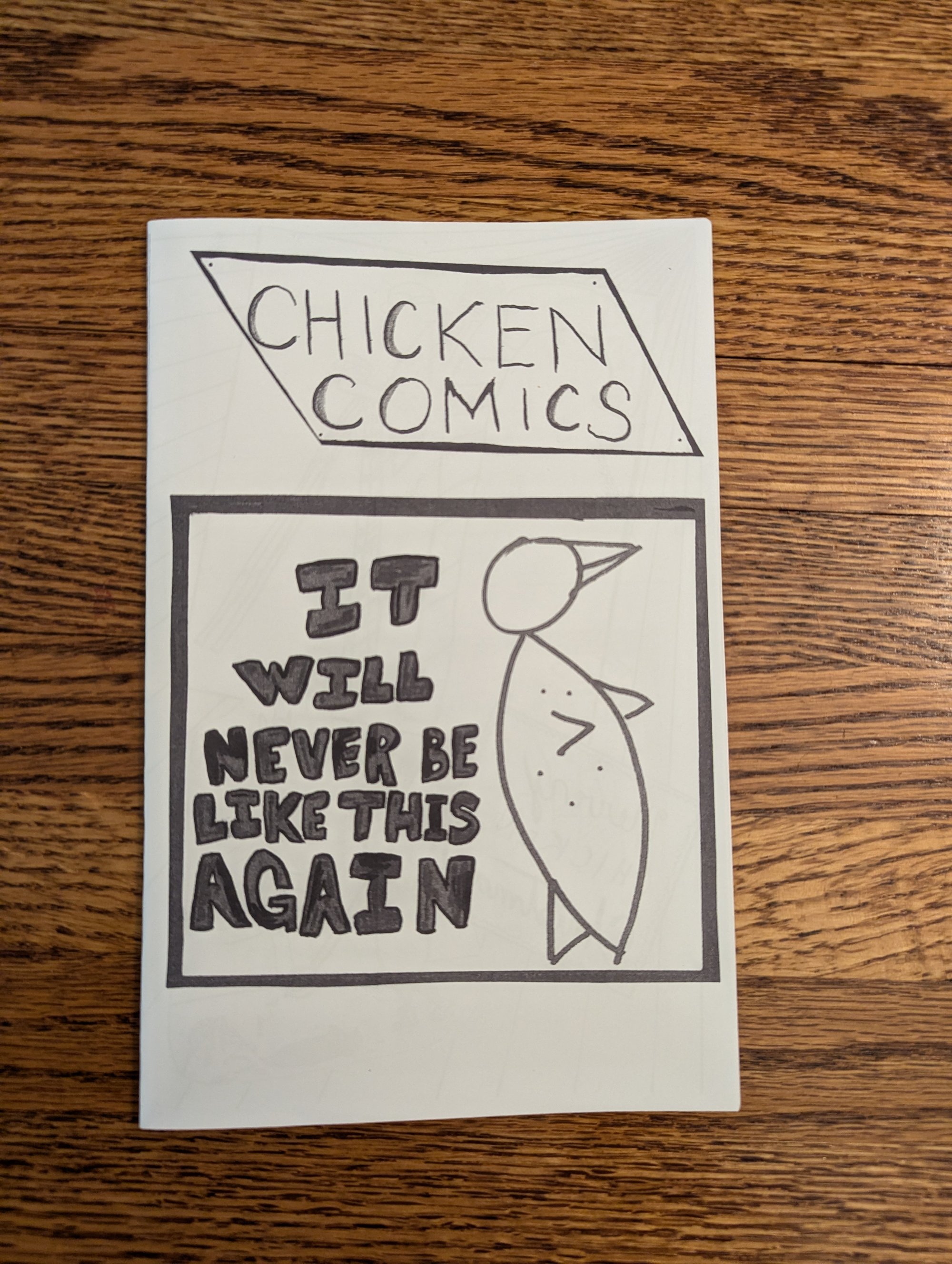This is the initial zine for Chicken comics. Printed on an inkjet printer. 10 pages of fun with Chicken.